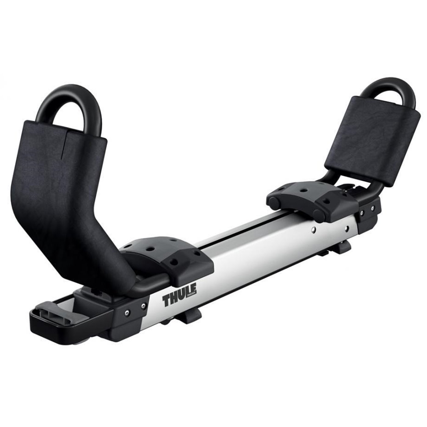 Porta kayak/canoa con sistema di sollevamento assistito: consente di caricare e scaricare il kayak da soli grazie agli ammortizzatori a gas ausiliari che sollevano e alleggeriscono il kayak di ben 18 kg. Tutte le operazioni di carico/scarico possono essere inoltre effettuate all'altezza della vita in quanto, con l'aiuto dei doppi bracci estensibili, è possibile abbassare il kayak fino a 1 metro di altezza. Massima protezione per lo scafo grazie a 8 punti di contatto imbottiti. Struttura in acciaio con doppio rivestimento in alluminio resistente alla corrosione. Compatibile solo con barre Thule ProBar. Serratura inclusa. Portata: 35 kg. Conforme alle norme City Crash.