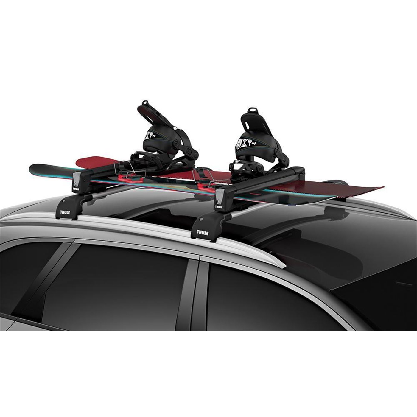 Portasci/snowboard da tetto, aerodinamico ed elegante, in alluminio anodizzato. Adatto per tutti i tipi di sci e snowboards, anche con attacchi alti grazie agli spessori in dotazione che permettono di alzarlo rispetto al tetto dell'auto. I supporti in gomma ultra-morbida mantengono gli sci in posizione in modo stabile e sicuro senza graffiarne la superficie. Quando non viene utilizzato, è possibile ridurne l'altezza grazie al sistema di molle verticali integrate. I pulsanti di grosse dimensioni consentono di aprirlo/chiuderlo facilmente anche con i guanti. Antifurto: serratura sci su portasci e portasci su auto. Si monta direttamente e senza bisogno di utensili nella canalina a T delle barre portatutto tramite il kit di montaggio in dotazione (kit di montaggio per Thule SquareBar disponibile come accessorio - cod. 600889700). Rispetta i più rigorosi Standard di sicurezza (approvato City Crash e TUV). Porta fino a 6 paia di sci o 3 snowboard. Larghezza di carico: 75 cm.