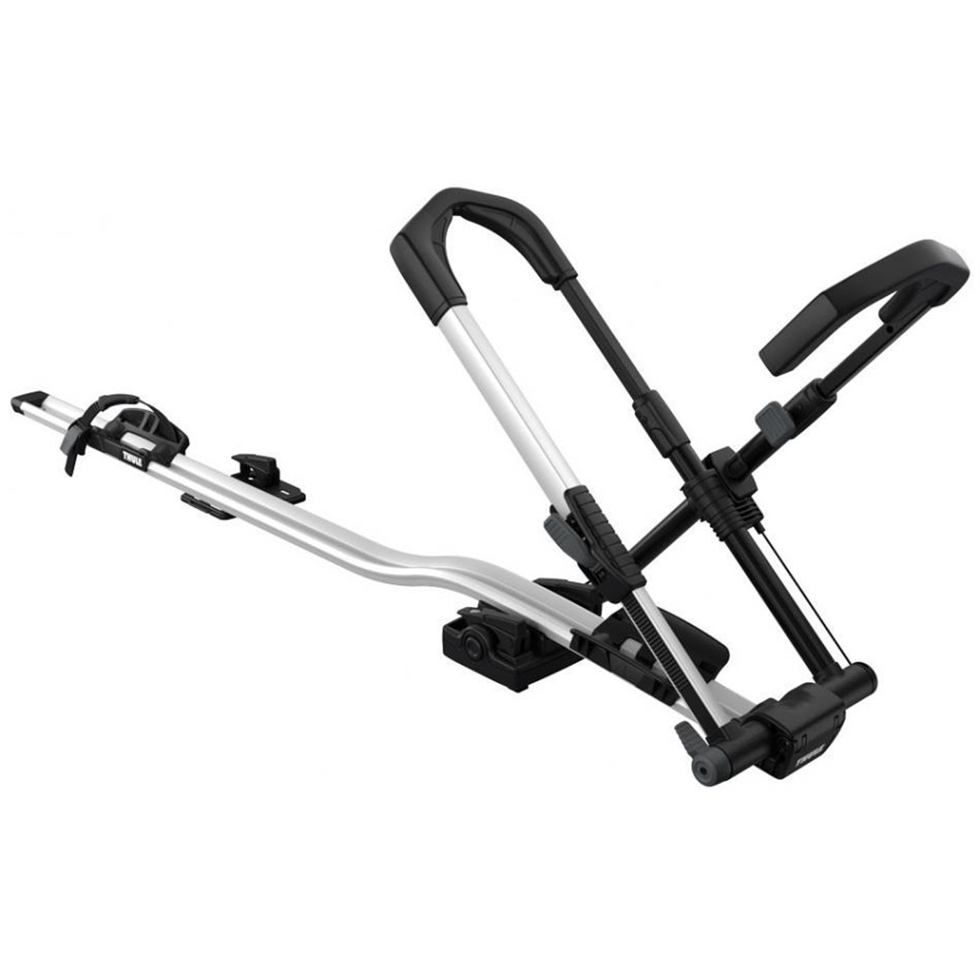 Portabici da tetto dal montaggio veloce e sicuro, progettato per trasportare in tutta sicurezza la bici bloccando solo le ruote, senza entrare in contatto con il telaio. Due robusti ganci con cuscinetti bloccano saldamente la ruota anteriore mentre quella posteriore viene tenuta in posizione da una pratica cinghia con cricchetto. Compatibile con bici di qualsiasi tipo indipendentemente dal design e dalle dimensioni del telaio, dal sistema frenante, dalle sospensioni e dalle dimensioni delle ruote (da 20 a 29" e con pneumatici fino a 3"). Si può montare su tutte le barre Thule (per le SquareBar occorre l'adattatore cod. 600889800) e su barre con canalina a T 24x30 mm (es. Bmw, Renault) utilizzando l'adattatore cod. 600889101. Provvisto di serratura bici su portabici e portabici su barre. Portata: 20 kg. Peso: 7,7 kg. Conforme alle norme City Crash. Disponibile accessorio cod. 600599100 per trasportare bici con pneumatici da 3 a 5".