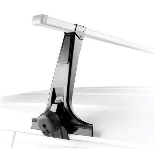 Set 4 piedi per barre portatutto Thule SquareBar a sezione rettangolare. Specifico per auto provviste di grondine. Portata: 100 kg. Altezza piede (distanza tra la base del piede ed il punto di contatto con la barra): 28 cm. Pomelli con serratura disponibili come optional (cod. 600000527). Certificato TUV.