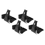 Set 4 piedi per barre portatutto Thule. Specifico per auto con tetto standard (senza barre longitudinali o punti fissi di aggancio). Da completare con kit di fissaggio (vedi Guida all'acquisto Thule). Serrature incluse. Portata: 75 kg.