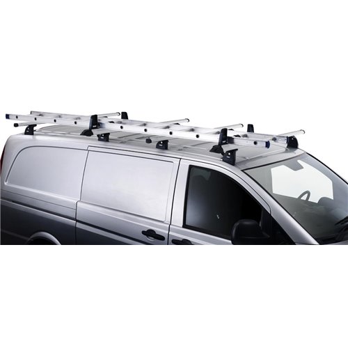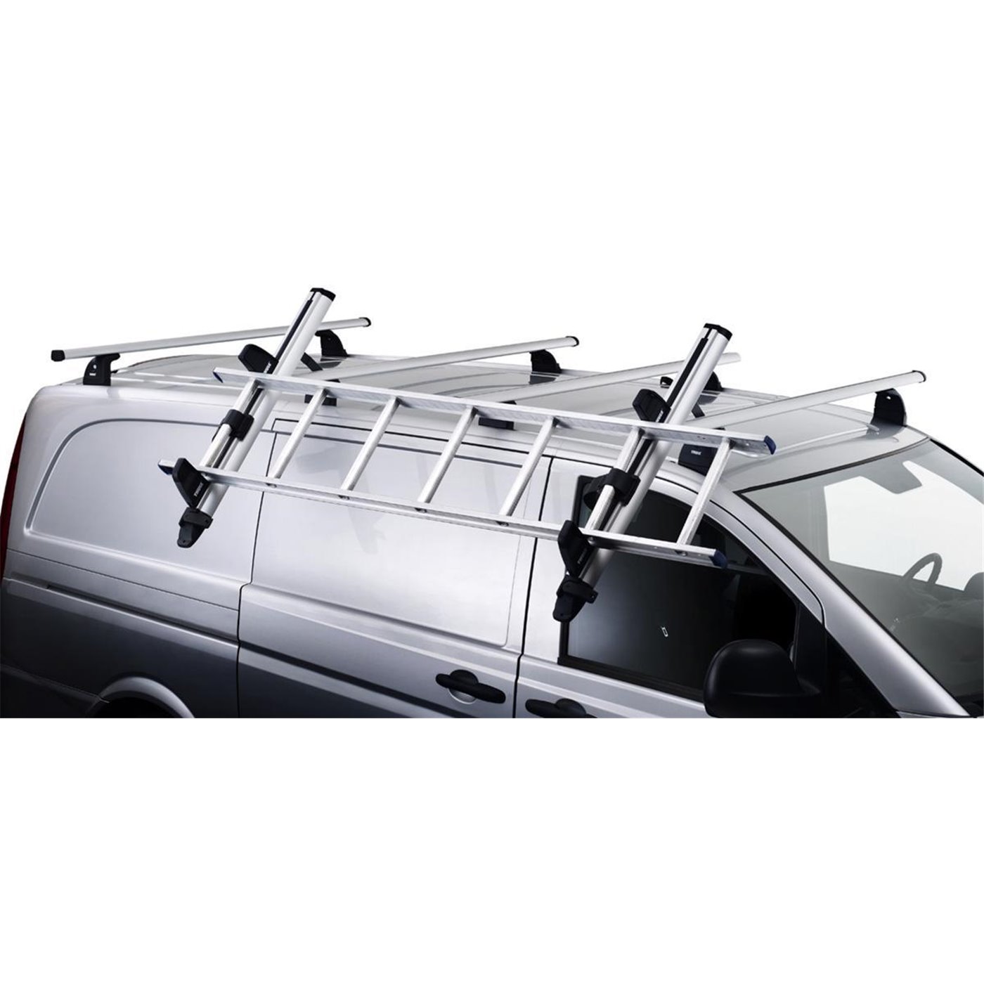 Innovativo portascale che scorre all'esterno del tetto e si abbassa per consentire di effettuare le operazioni di carico ad un'altezza comoda. Realizzato in alluminio resistente e leggero. Provvisto di robuste cinghie in gomma con meccanismo a cricchetto per fissare la scala in modo pratico e sicuro. Capacità di carico 50 kg/scale estensibili a 3 snodi. Si monta nella canalina a T superiore delle barre Heavy-Duty. Disponibile adattatore 310 da utilizzare quando i gradini della scala sono disassati rispetto al portascale.